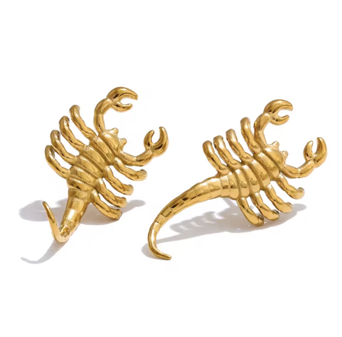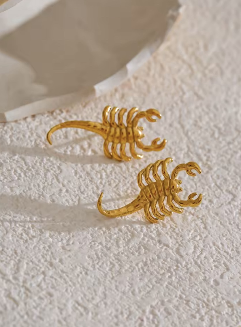 Aretes escorpión acero baño de oro