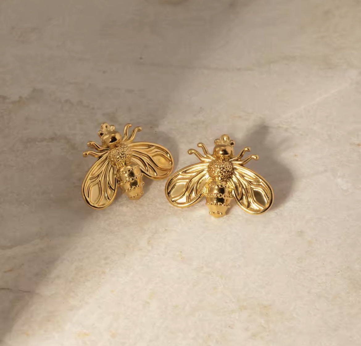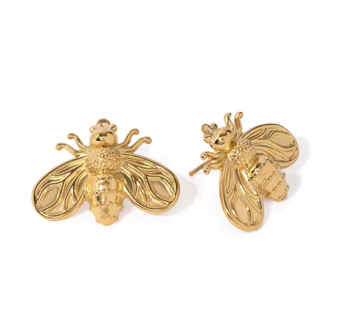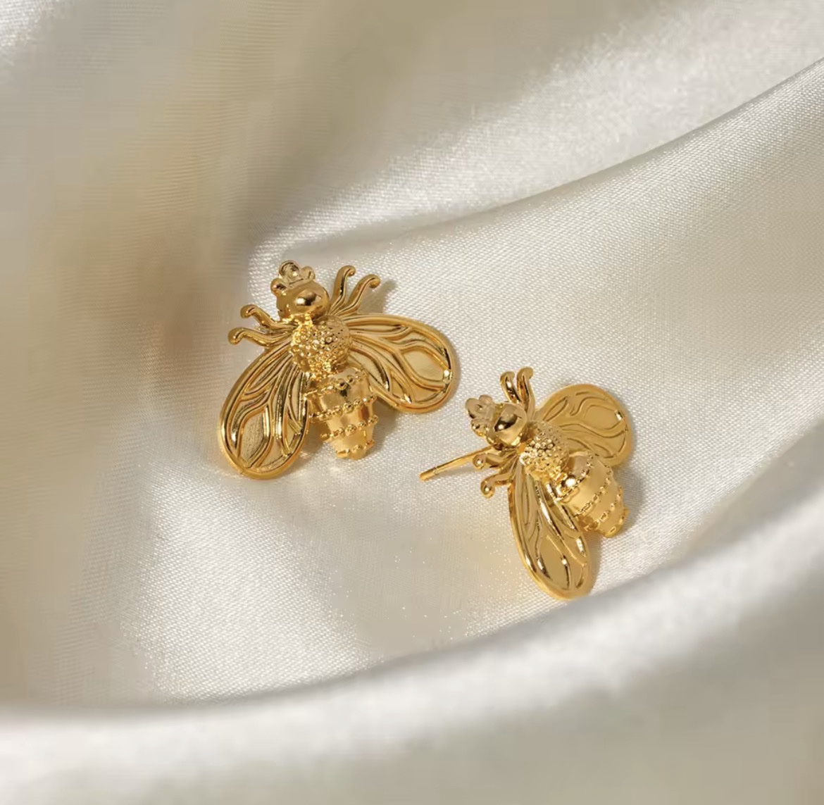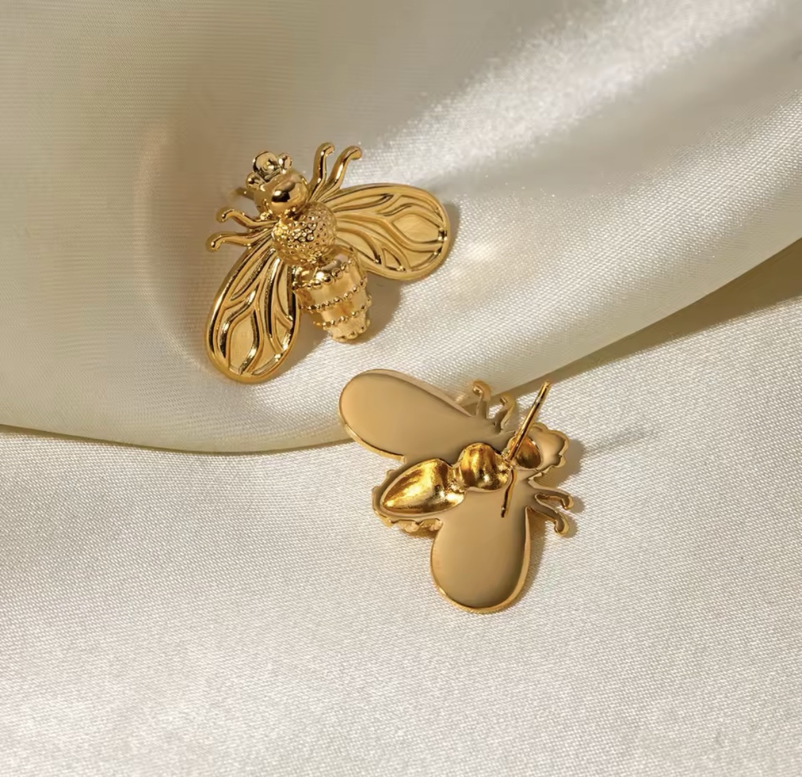 Aretes abeja acero baño de oro