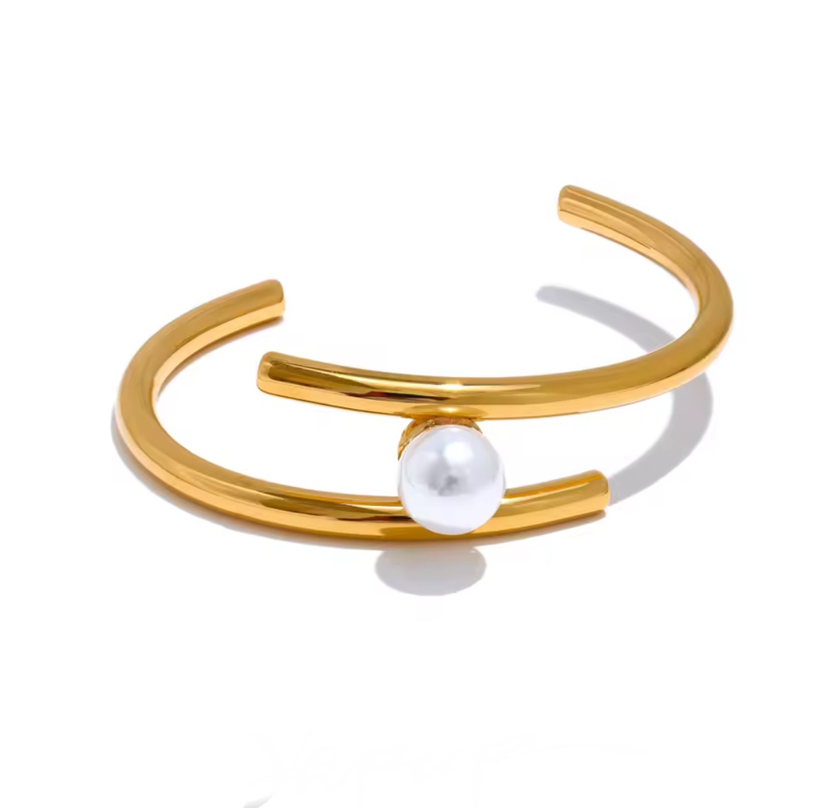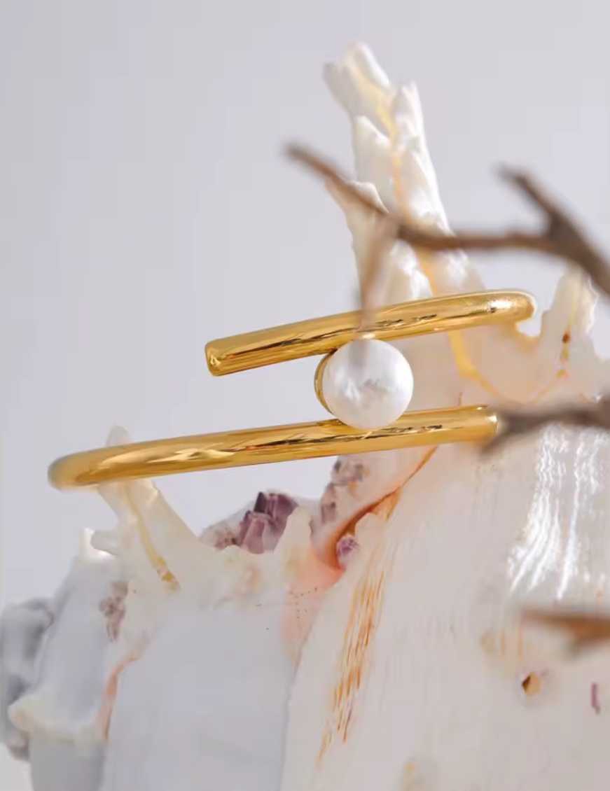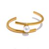 Pulsera con perla en acero con baño de oro