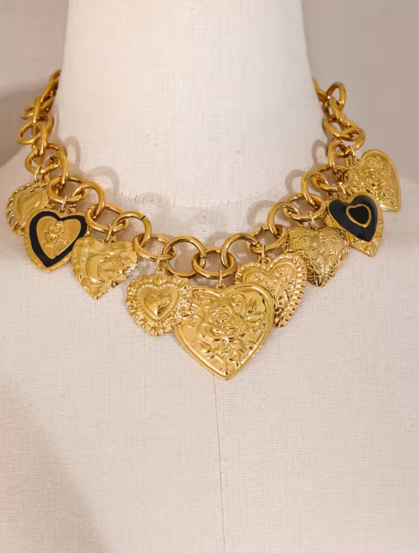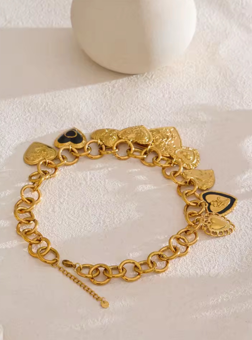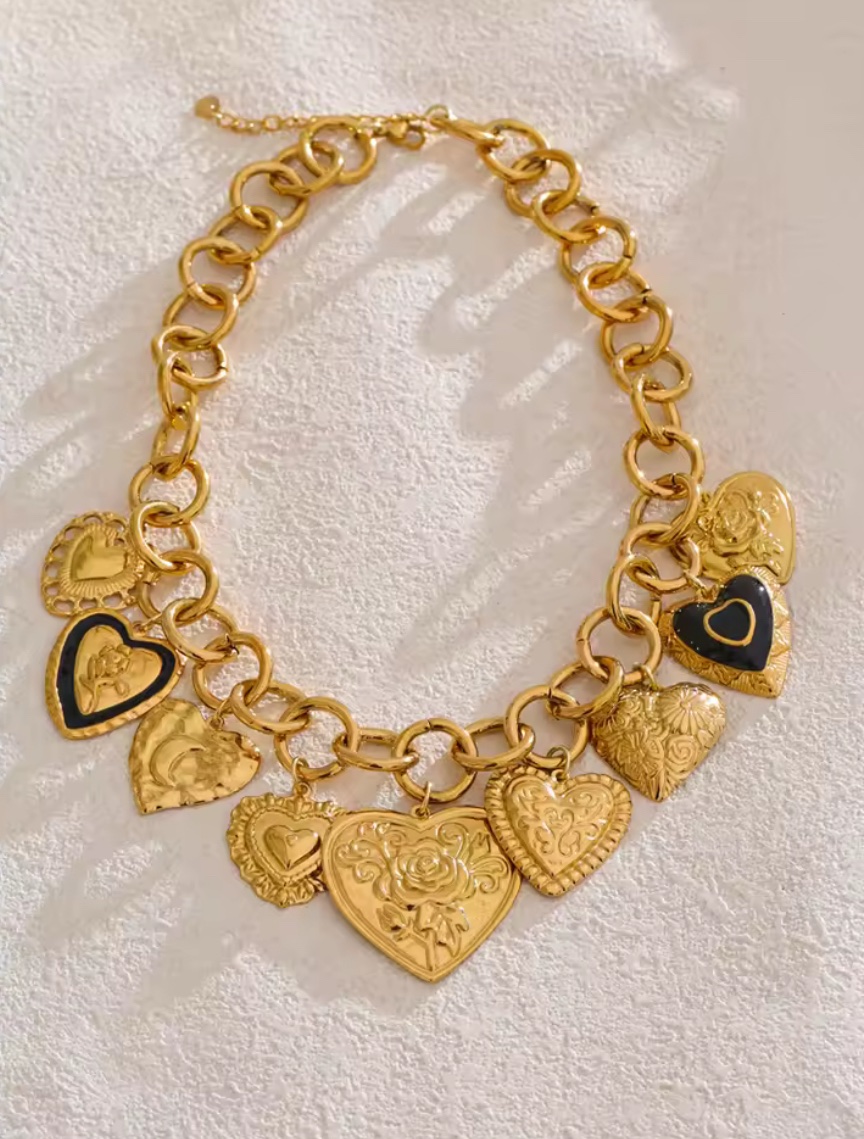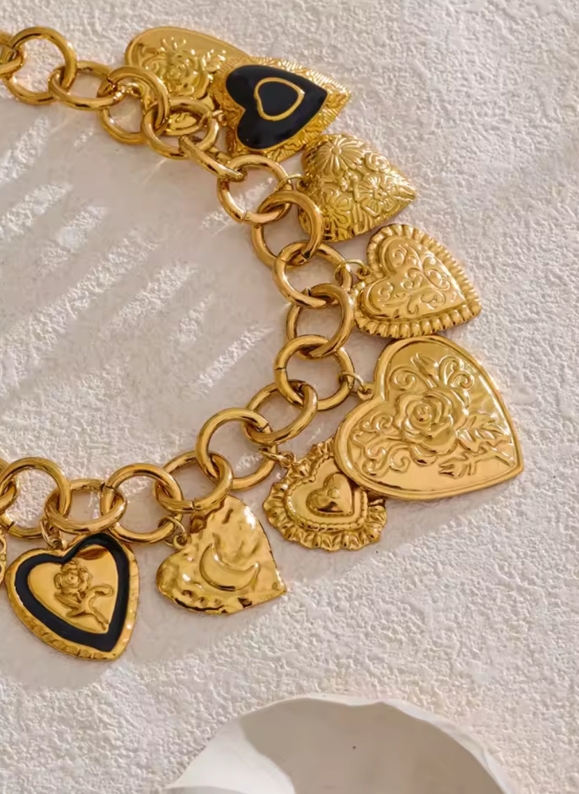 CADENA ACERO CON BAÑO DE ORO CON MAXI CHARMS CORAZONES